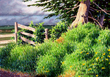 Wheelbarrow And Fence